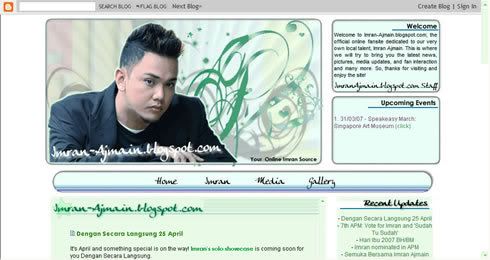 Welcome to IMRANAJMAIN.COM! As you can see, this site's got all the necessary new look - from the domain name, to the layout, to the additional features to the fansite. Bookmark us now and check back daily for new updates! For more suggestive feedbacks, mail to us here, alright. And, don't forget to come for Dengan Secara Langsung, tomorrow! |